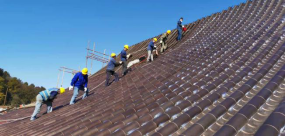 四、全國(guó)首例采用3mm銅材壓延成型的九華山旃檀林屋面銅瓦項(xiàng)目一期工程順利收官, 這是銅官府作為國(guó)家銅瓦行業(yè)標(biāo)準(zhǔn)起草單位對(duì)引領(lǐng)行業(yè)工藝創(chuàng)新做出的新貢獻(xiàn)。