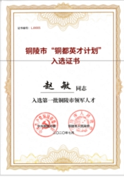 九、趙敏繼曾獲得“安徽省技術(shù)創(chuàng)新領(lǐng)軍人才”稱號(hào)后,2020年又入選銅陵市“銅都英才計(jì)劃”,被中共銅陵市委、銅陵市人民政府授予首批“銅陵市領(lǐng)軍人才”稱號(hào)。